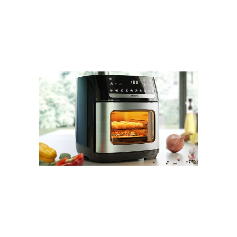 La freidora de aire Philips es ideal para toda la familia, tiene una capacidad de 12Lts, calentamiento rápido y accesorios que pueden optimizar las recetas para Airfryer y horno.