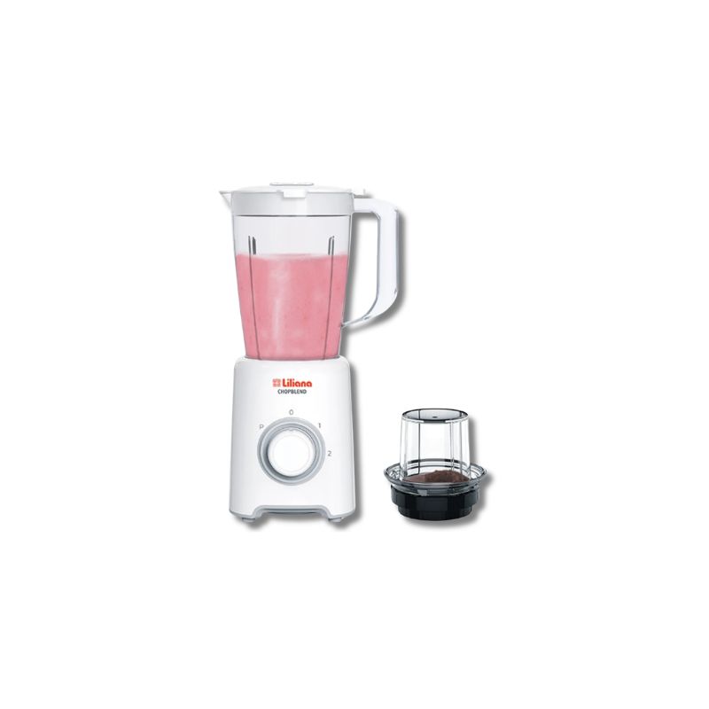 La Licuadora ChopBlend de Liliana ofrece potencia y versatilidad para preparar jugos, batidos y más de forma rápida y práctica. Cuenta con cuchillas de acero inoxidable, jarra de 1,5 L, molinillo/picador integrado, 2 velocidades + pulsador y tapa dosificadora, permitiendo triturar hielo y lograr resultados perfectos en cada uso.