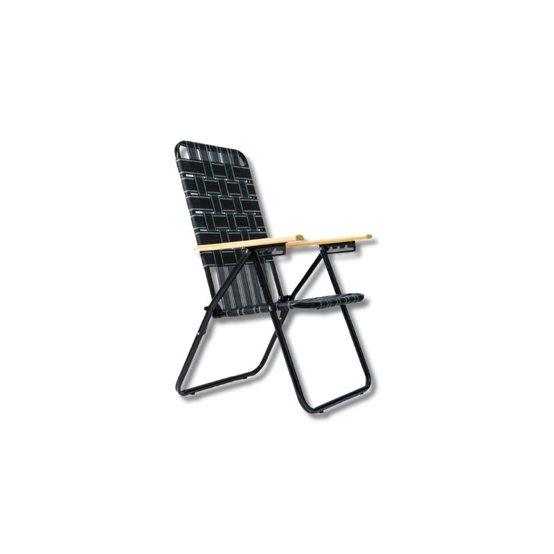 La reposera Descansar de caño y 5 posiciones con cintas. Brinda comodidad y resistencia en un diseño clásico. Con respaldo reclinable, asiento de cintas reforzadas y apoyabrazos de madera, es perfecta para disfrutar al aire libre con practicidad y confort.