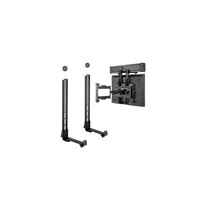 El soporte Onebox para barra de sonido se adaptan a la barra de 40 – 182 mm de profundidad, proporcionando un agarre fuerte y asegurando que la barra de sonido no se vuelque cuando el soporte se inclina 10°. Permite montar la barra de sonido encima o debajo del televisor con soporte para LED/LCD TV.