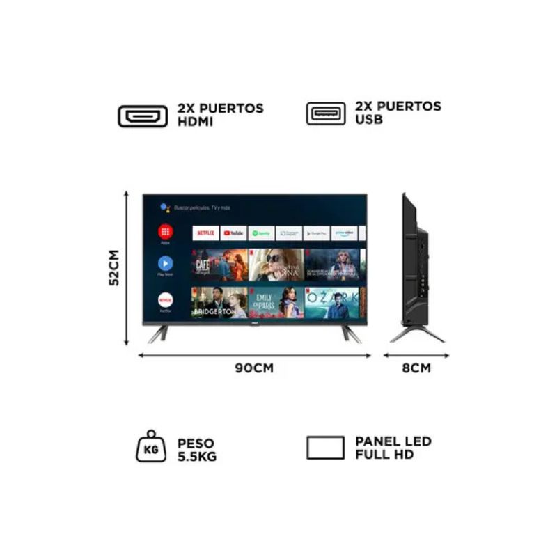 El televisor smart TV RCA de 40″ es la puerta de entrada a un mundo de entretenimiento superior, combinando una resolución Full HD y sistema opertivo Google TV. Es el equipo ideal para quienes buscan calidad de imagen nítida y un acceso rápido a plataformas como Netflix, Disney+ y YouTube, todo en un diseño moderno que se adapta a cualquier ambiente.
